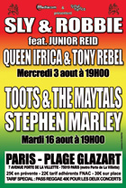 Le mercredi 3 août, ce sont rien moins que Sly & Robbie accompagnés de Junior Reid, mais également Tony Rebel et Queen Ifrica qui se produiront porte de la Villette à Paris.