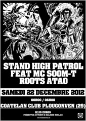 News reggae : Stand High Patrol et Soom-T à Morlaix Le sound system breton Stand High Patrol se produira sur ses terres, le samedi 22 décembre, au Coatelan Club de Plougonven, près de Morlaix, dans le Finistère.
