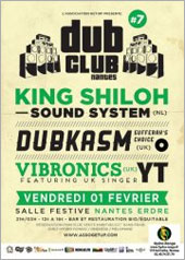 La Salle Festive Nantes Erdre accueillera ainsi les Hollandais de King Shiloh Sound System, dont on ne présente plus la sono surpuissante, les Anglais de Dubkasm (Dj Stryda aux platines et Digistep au saxophone), qui viendront présenter leur nouvel album, "Brixton Rec", sorti l'année dernière, et enfin leurs compatriotes de Vibronics, accompagnés par YT.