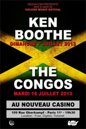 News reggae : Ken Boothe et The Congos au Colors Music Festival Plusieurs semaines après sa fantastique prestation au Cabaret Sauvage, Ken Boothe sera de retour à Paris. Dans le cadre du Colors Music Festival, dont c'est la cinquième édition, il se produira au Nouveau Casino le dimanche 7 juillet pour une soirée sous le signe du rocksteady.
