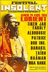 News reggae : Le festival insolent l'ouvre en grand  Rendez-vous incontournable pour les amateurs de reggae en Bretagne : le Festival Insolent réunira cette année certaines des plus grosses locomotives de la scène reggae française et européenne.